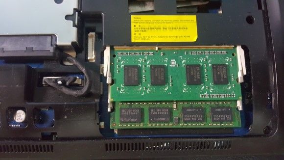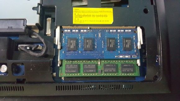 현재 아래에 삼성 4GB 메모리가, 위에 제조사 불명의 1GB 메모리가 장착되어 있다.
