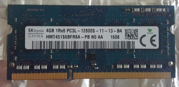 SK하이닉스사의 PC3L-12800S 4GB 메모리.
