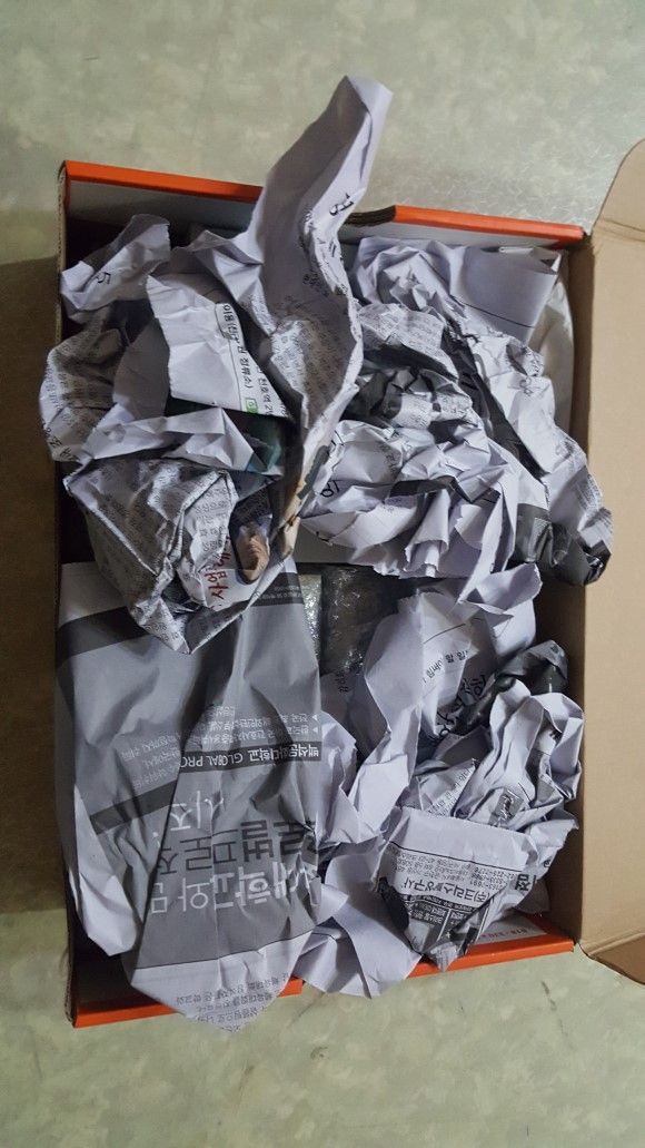 신문지라는 이름의 쓰레기(...)이자 완충제 안으로 또하나의 완충제, 에어켑이 보인다... 중고 하나 사면 그주 분리수거통은 넘처난다.