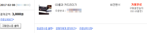 경매로 2월 8일 3,000원에 낙찰받아 2월 10일날 도착