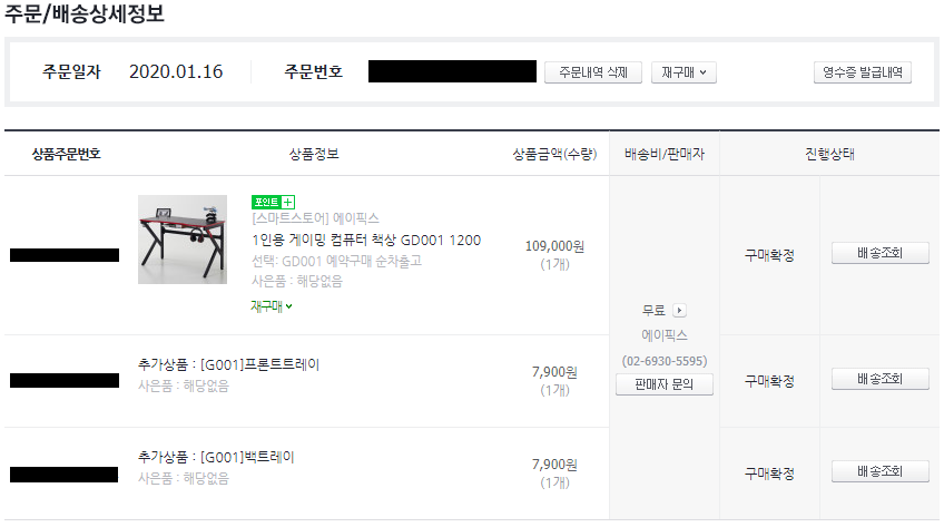 구매는 네이버 에이픽스 쇼핑몰을 통해 구입했고, 추가 구성품은 백트레이(선정리용)와 프론트트레이(기타 잡류 보관용)만 선택했다. 기타 컵 홀더나 헤드셋 홀더는 튀어나오게끔 되어 있어 부딫히고 금방 부서질 것 같아 제외했다.